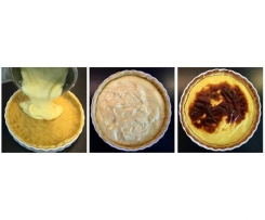 • die noch heisse Mischung über den Kuchenboden verteilen.