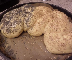 Man kann daraus schnell ein süßes Brot machen.Einfach mehr Zucker reingeben und Mohn und Sesam weglassen.Ich habe es auch in einem Kasten gebacken.