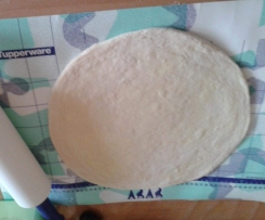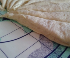 Die 8 Bällchen zu 8 gleich große Kreise (ca. 30cm Durchmesser) ausrollen.