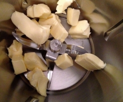 - 125g zimmerwarme Butter in Stücken in den Mixtopf geben