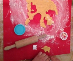 - Rollt den Teig auf einer bemehlten Arbeitsfläche aus, und stecht nach herzenslust aus.