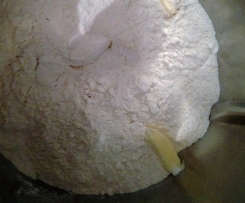 "Mixtopf geschlossen" . - 25Sek/Stufe 5 zu einem Teig kneten. Den Teig in eine Schüssel umfüllen und von Hand eine Kugel formen. In Frischhaltefolie gewickelt etwa eine Stunde im Kühlschrank kühlen.