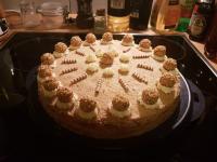 habe die Torte für ein Fest gemacht und sie war sehr lecker. War praktisch weil ich schon am Abend vorher alles machen konnte und nur noch in der Früh die Torte verzieren musste. Werde ich sicher wieder machen, da sie lecker schmeckt.