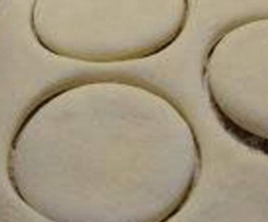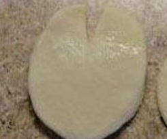 Bevor man den ausgestochenen Teig auf das Blech legt, die Kreise etwas eiförmig verziehen, oben einschneiden und dann auf´s Blech legen.