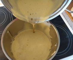 - Füge das Guinness oder Malzbier zu der geschmolzenen Buttermasse hinzu und lasse es abkühlen.