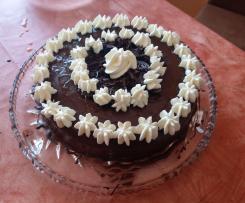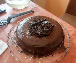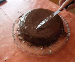 Mixtopf spülen. - Lasse die Torte abkühlen und hacke die Kuvertüre und Zartbitterschokolade 10 Sek./Stufe 5 klein, sollte noch nicht ausreichend klein sein, anschließend nochmal ein paar Sekunden ohne Zeiteinstellung/Stufe 8 zerkleinern.