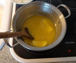 - Schmilz die Butter gemeinsam mit dem Zucker in einem Topf.