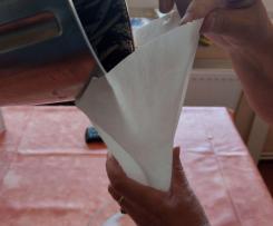- Spritze die Kuvertüre in Form eines Nestes in den Topf.