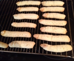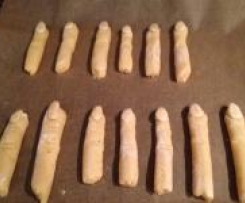 Meine "Finger" sind gerade aus dem Ofen gekommen,leider sind sie mir etwas zerlaufe und sind nun eher "Wurstfinger"