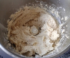 zufügen und ebenfalls 10 Sekunden Stufe 4 verrühren3. Mehl, Mandeln und die Prise Salz dazugeben und alles zusammen 20 bis 30 Sekunden Knetstufe verkneten. Eventuell Vorgang wiederholen