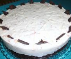 Joghurtcreme auf dem Bisquittboden verteilen und erkalten lassen.