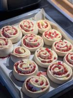 Die Schnecken werden schön fluffig, saftig und beerenfrisch und ergeben 13-16 Portionen!!!