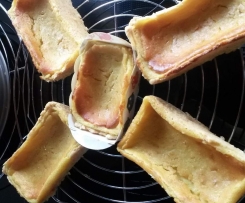 Kästchen und Förmchen mit dünn mit dem Mürbteig auskleiden, Quarkmasse hinein.