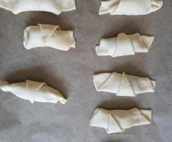 - Ein Backblech mit Backpapier belegen und die Teiglinge mit dem Ende nach Unten darauf verteilen (nicht so wie auf dem Bild).