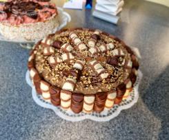 - Leicht erwärmte Nougatcreme und Buenos auf dem Cheesecake verteilen.