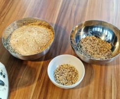 Haselnüsse herausnehmen, in eine Schüssel umfüllen und auskühlen lassen. - Butterkekse in der Mixtopf füllen und 10 Sek. /Stufe 5 vermengen.