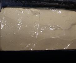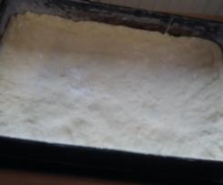 Teig direkt ausrollen und in eine quadratische Form geben. Meine hatte die Maße 24 x 36 cm