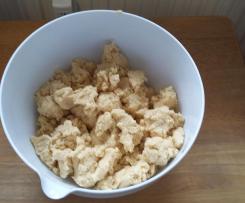 -Die Streusel in eine Schüssel umfüllen, nochmals kurz mit den Finger durcharbeiten und zur Seite stellen. (Auch wenn sie am Anfang etwas bröselig aussehen, sie haben die perfekte Konsistenz und werden ganz glatt)