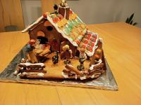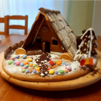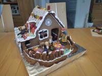 - Zunächst die Einzelteile verzieren - ganz nach Lust und Laune. Etwas trocknen lassen (bis nichts mehr rutschen kann). Dann das Haus zusammensetzen. Eine Tasse im Inneren kann als Stütze dienen. Gegebenfalls mit Puderzucker bestäuben und - irgendwann mal aufknuspern...