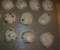 Lass ruhig mehr Platz zwischen den Bällen weil der Teig beim backen zerläuft!!