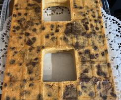 Zahl/Buchstabe in Form schneiden, mit Schokoladenglasur überziehen und nach Lust und Laune dekorieren.