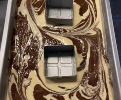Mit einer Gabel spiralförmig durch den Teig ziehen, so dass ein Marmormuster entsteht. - Den Kuchen bei 180 °C ca. 30 - 35 Minuten (je nach Backofen) backen (Stäbchenprobe).