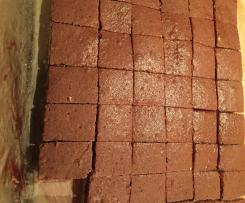 Nach dem Backen herausnehmen und den noch heißen Teig in kleine Würfel schneiden (nach Geschmack ca 3x3cm)