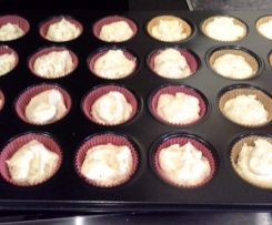 Ich backe einmal eine große Form (12) und dann ein Blech mit kleinen Muffins (24). Das passt von der Menge genau.