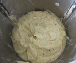 "Mixtopf geschlossen" geben. Die Pistazien 15 Sek. / Stufe 10 sehr fein mahlen (zwischendurch mit dem Spatel runterschieben, eventuell noch 5 Sek. weiter mahlen bis die Pistazien sehr fein sind). Die Pistazien in eine Schale füllen und an die Seite stellen.Frischkäse und Butter in den