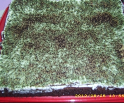 Kuchen ggf. ein bis zwei Stunden in den Kühlschrank stellen, dass die Masse aushärtet (z.B. im Sommer), danach wieder herausholen und in einen kühleren Raum stellen (nicht im Kühlschrank stehen lassen, sonst tritt der Effekt nicht ein).