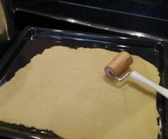 "Mixtopf geschlossen" geben und 30 sec / Stufe 5 verrühren. Den Teig auf einem Backblech verteilen und ausrollen.