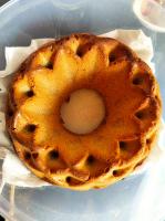 Den Kuchen aus dem Ofen holen und 30Min. auskühlen lassen. Dann kann er umgestürzt werden.