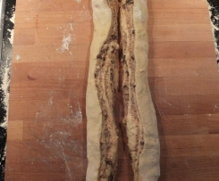 Die Rosinen-Nuss-Mischung darauf verteilen und aufrollen.