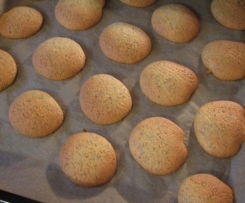 Ich mache sie gerade das 2.mal. Allerdings habe ich diesmal die Orange abgerieben,dann die weiße Haut entfernt und den Rest(keine Kerne) "geschreddert". Das wurde eine schöne schaumige Masse. Zum Schluss musste ich alles etwas länger vermengen und die Backzeit war gut 10 min. Aber dafür waren es auch ein paar Plätzchen mehr