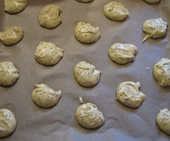 Nun mit Teelöffeln kleine Häufchen auf ein Backblech setzen. Am besten darauf achten, das immer ca 3 cm Abstand dazwischen sind.