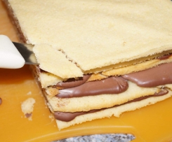 Auf jeden Steifen die Creme auftragen und den nächsten Teigstreifen darauf legen. Etwas Creme zurückhalten. Die letzte Schicht nicht mehr bestreichen.