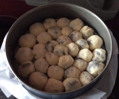 - Kugeln in eine beschichtete 26-er Springform mit der zugedrückten Seite nach unten legen