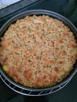Danach 2 Eier unterrühren. - In der Zwischzeit, die Springform (28iger) fetten. Den kalten Teig nochmal mit der Hand durchkneten und in die Springform verteilen. Die Puddingmasse drüber geben und danach die Streusel oben drauf verteilen und für ca. 30 - 40 min backen, bis die Streusel leich braun sind.