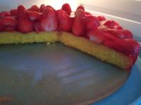 Heute die Hälfte in der Springform gebacken als Boden für Erdbeeren.