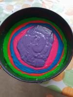 Dann den Teig in 3-4 Schüsseln aufteilen ( je nachdem wievie Farben ihr nehmt.)