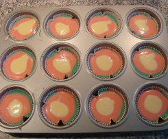 Den Teig anschließend in gewünschter Farbreihenfolge übereinander in Muffinformen geben und bei 180 C° im vorgeheizten Backofen 20-25 Minuten backen.Die abgekühlten Muffins noch nach Belieben verzieren