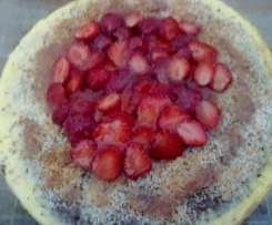 Achtung: Wenn die Springform nicht dicht schließt, mit Alufolie die Form von außen abdichten, da sonst die Belagsflüssigkeit ausläuft!