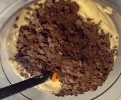 Teig in eine Schüssel umfüllen und Schokoraspel von Hand umrühren