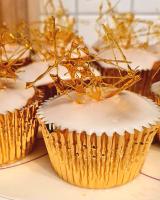 Die Muffins mit einem Zahnstocher mehrmals einstechen und die Glasur auf die Muffins geben.