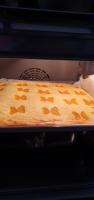 Man kann die Schmetterlinge recht eng beieinander legen, so ergeben sich recht kleine Kuchenstückchen (ideal für Kinder). Ein weites Auseinanderlegen ergibt natürlich größere Stücke. Man kann die Schmetterlinge aber natürlich auch kreuz und quer auf dem Blech verteilen.