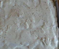 Den Kuchen bei 200°C Umluft in 25-30 Minuten backen. - Nach dem Erkalten mit der Creme bestreichen: