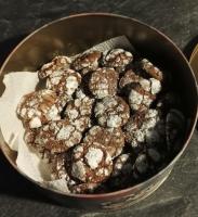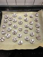 Die Kekse zerlaufen beim Backen und bekommen Risse, die dann im Kontrast zu dem weißen Puderzucker dunkel bleiben und sehr schön aussehen.