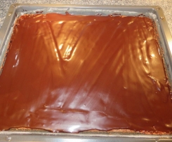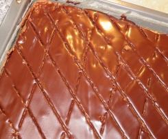 4. Guß auf dem Teig verteilen - 5. Sofort in Rauten schneiden und vom Blech nehmen. Das geht am besten mit einem flachen Spatel.