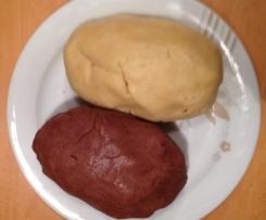 Dunklen und hellen Teig in beliebigem Mengenverhältnis (eignet sich besonders gut zu Verarbeiten des "Teigrestes" ganz leicht zusammenkneten und zu einer etwa 3 c. dicken Rolle formen.