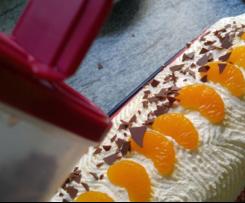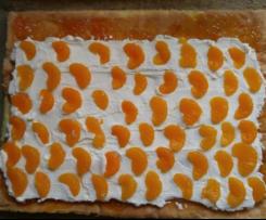 - Mandarinen auf der Sahne verteilen (muss nicht so ordentlich gereiht wie auf dem Bild sein - kreuz und quer - und auch weniger Mandarinen geht auch